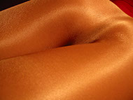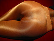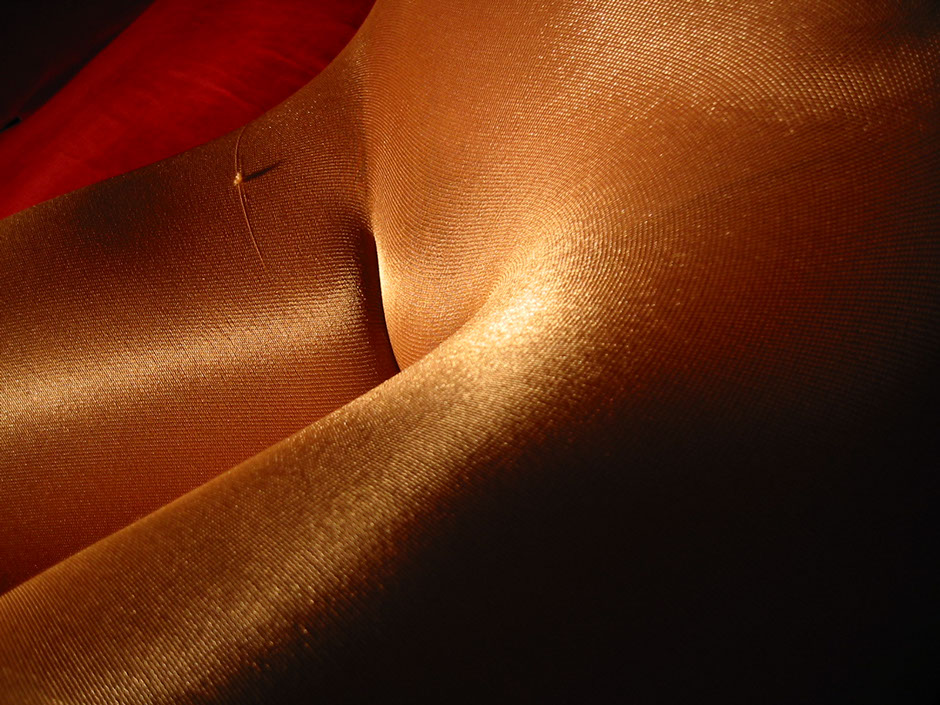 Par effet de "masque" ce travail est sauvé du pur érotisme comme de la fausse pudeur. Le photographe crée un univers de cristal qui sépare du monde le plus intime comme il le fait quasiment pénétrer. L'œil se fixe où le collant est collé. Pas question de détacher le premier du second et celui-ci de ce qu'il cache. L'habit fait la démone et le moine à la fois. Les cuisses en deviennent plus dorées et on aime encore plus leurs courbes tranquilles. Le monde entier est ici au moment même où il est confisqué. Au mieux l'homme caresse du regard : mais n'est-ce pas cela que les critiques moralisateurs de l'art ne peuvent plus supporter ? Montrer le confluent des cuisses leur paraît sans doute un péché. Mais cela a de quoi ravir l'artiste : il n'en demande pas plus.
